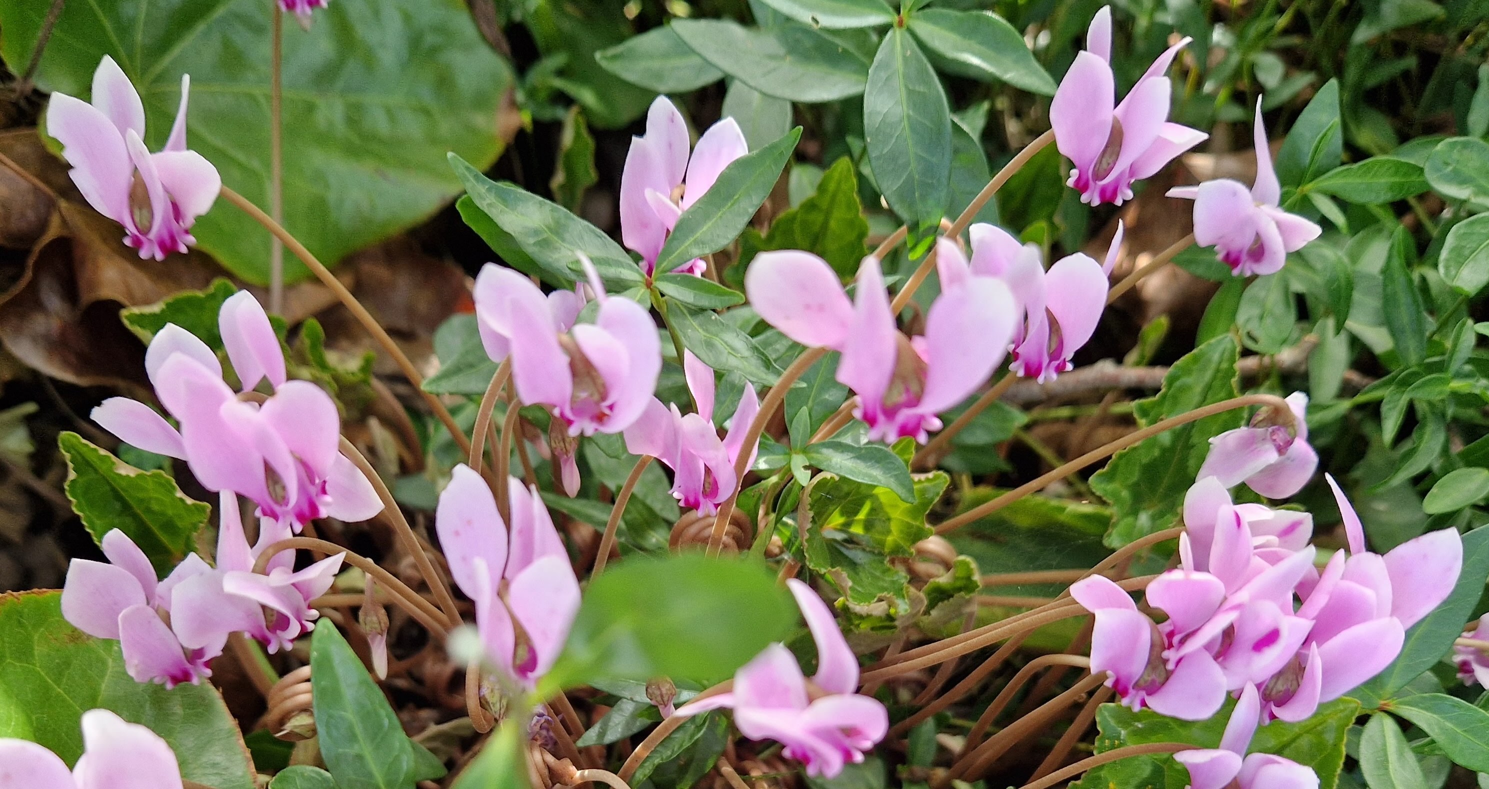 Last but not at all least, some tiny cyclamen have appeared in a shady border. A wonderful splash of delicacy amidst the dark green shade.