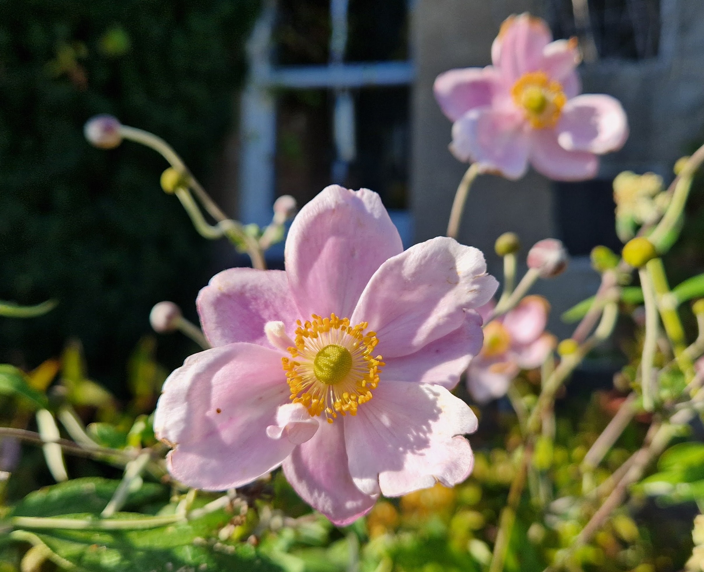Also near the end of the season, Japanese anemone are waving their cheerful flowers around.