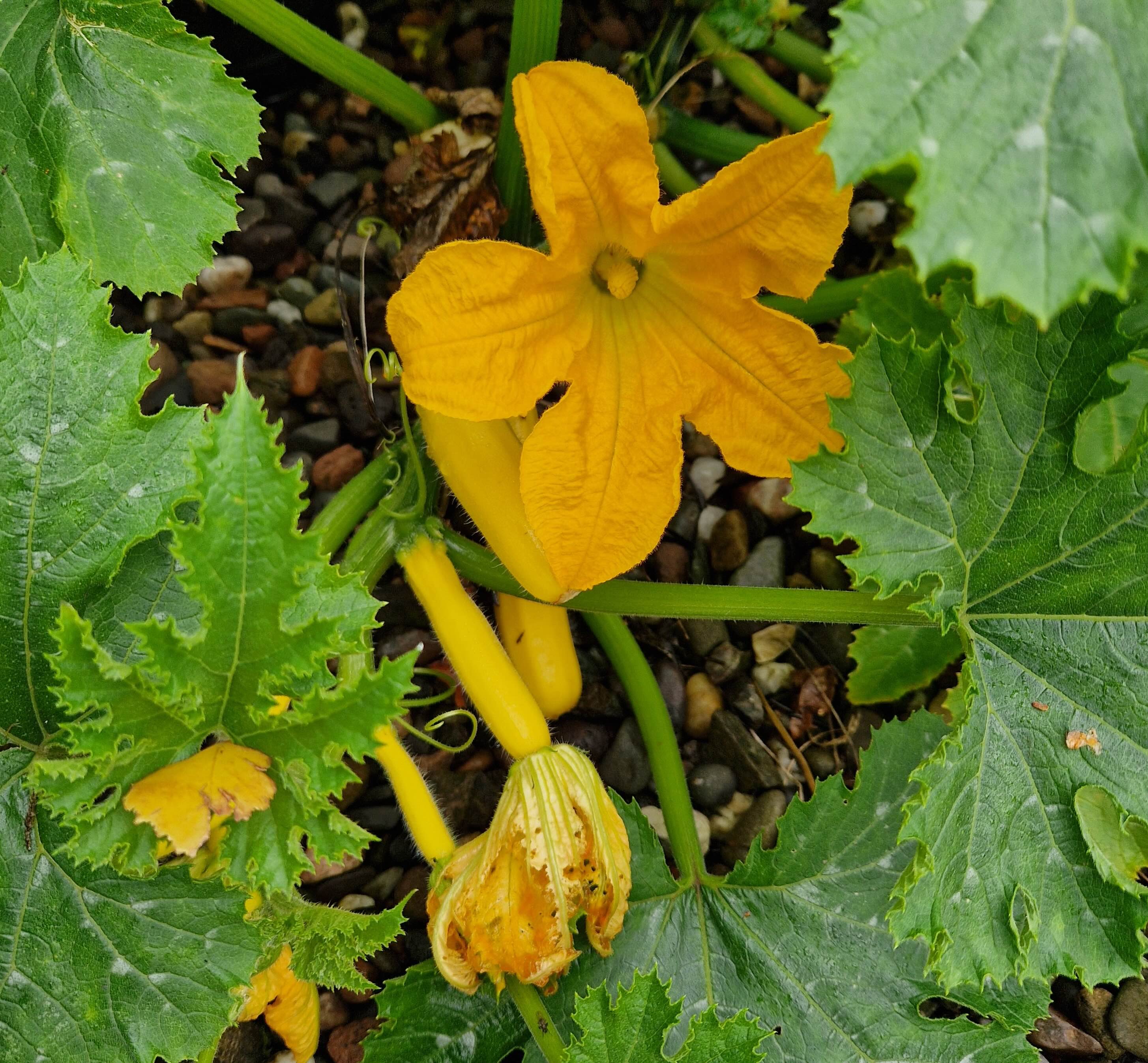 This must be a first for my veg garden in October. Usually, there are sufficient cool nights that courgettes shrink away to nothing by the 2nd week of September. Not so this year. Fruit AND flowers into October, what resilience.