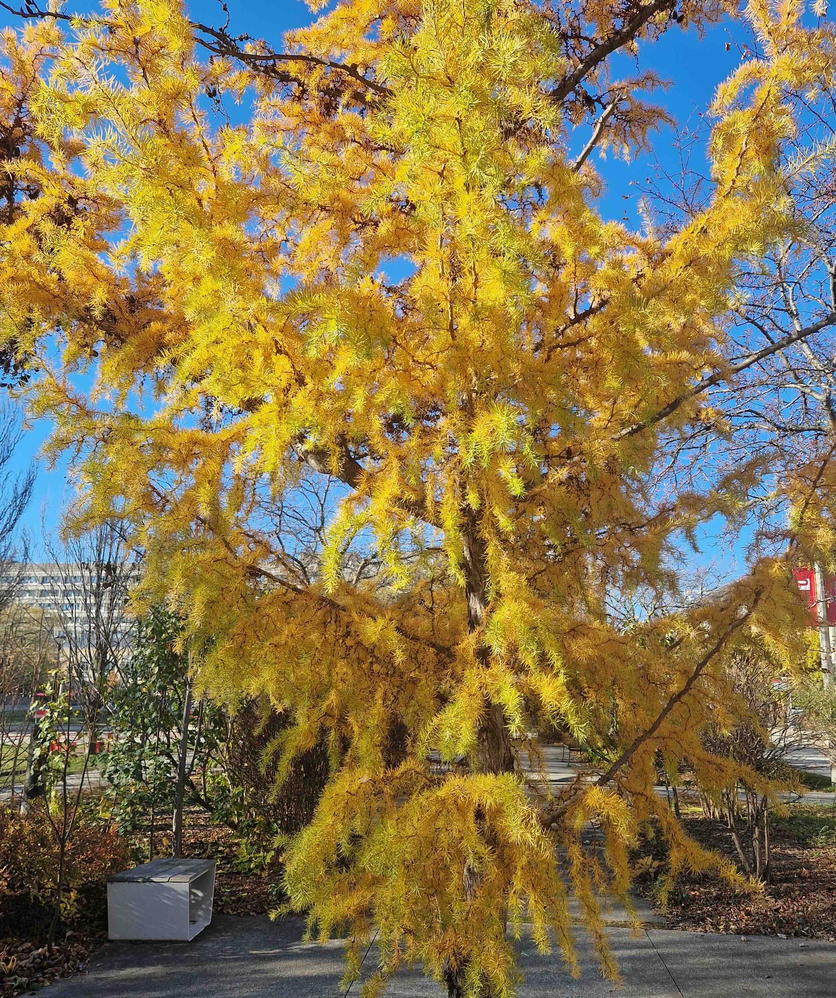 Another wonderful tree, this one is a tamarack larch, not quite the same as the European larch, but similar lives here in the boreal forests, which begins just 60-80km north of Toronto (this one has been planted here!).