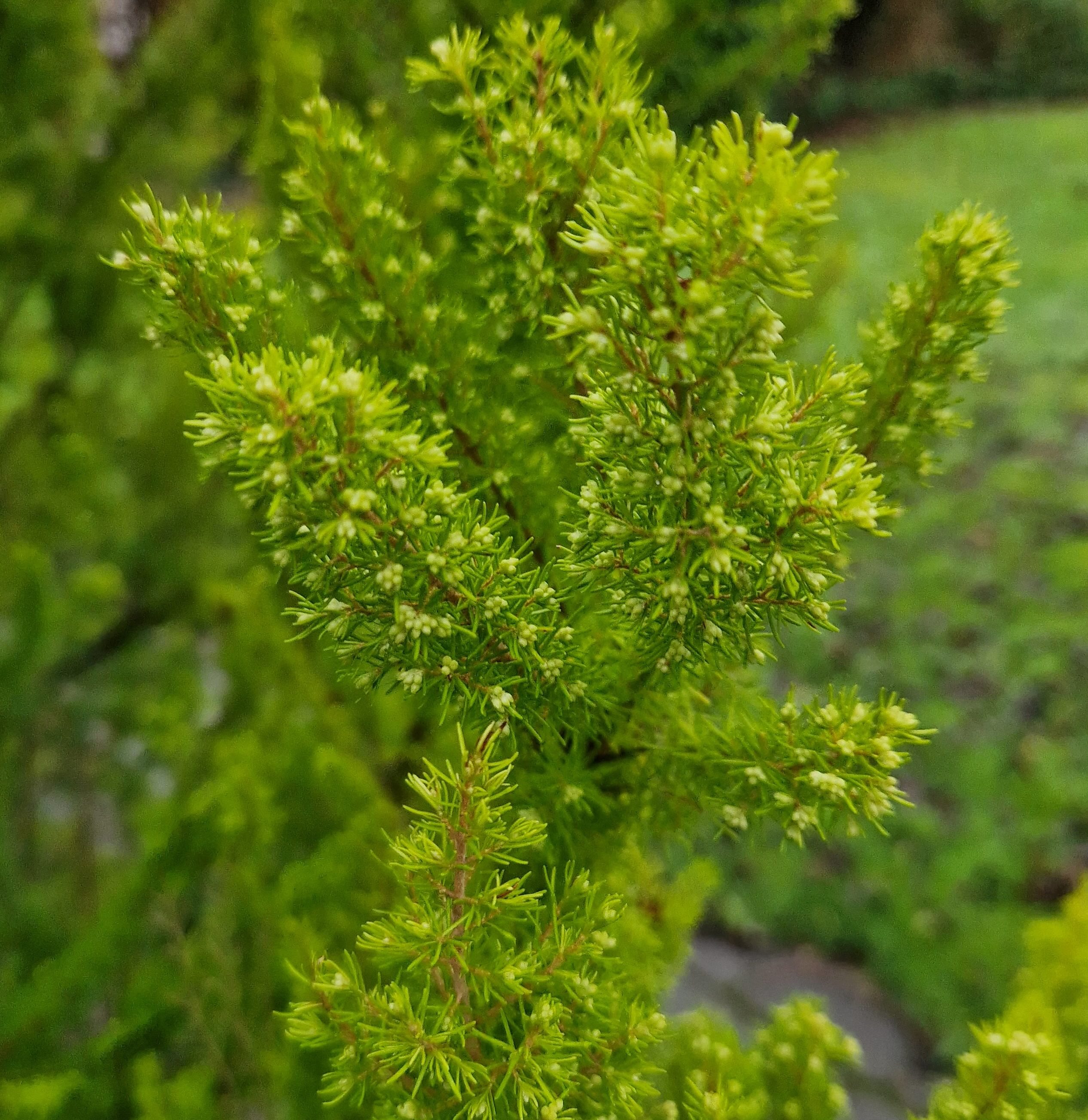 Tree heather has been glowing away with lime-green foliage for weeks, and finally is producing its tiny little flowers. Not a shrub I would have bought, this one came from my Mom, who won’t remember that now, but she’d love it if she could travel here.