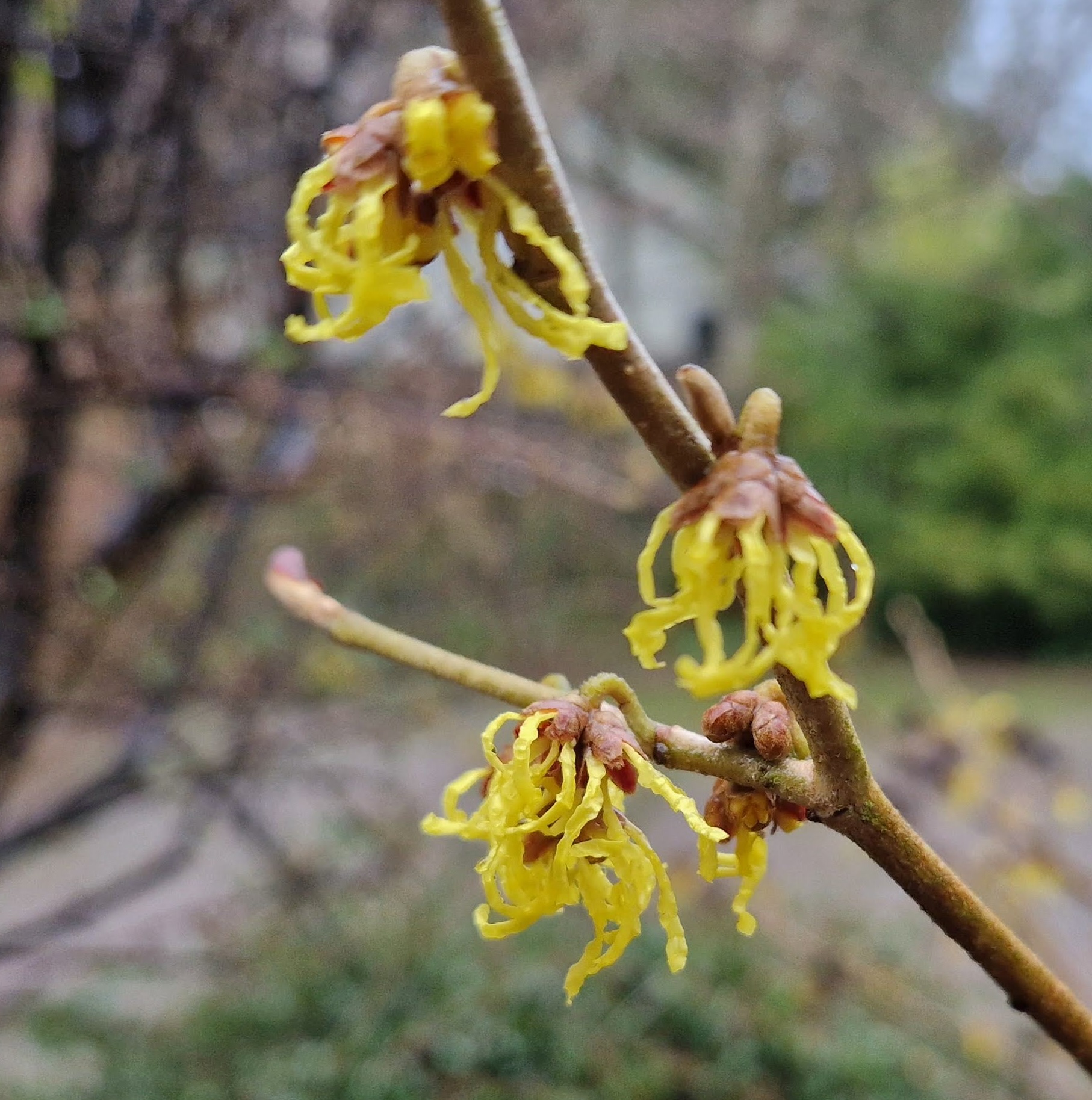 My favourite tree of the season, witch hazel has been slow to bloom this year, but finally here are the magical little yellow streamers with their honey-sweet scent.