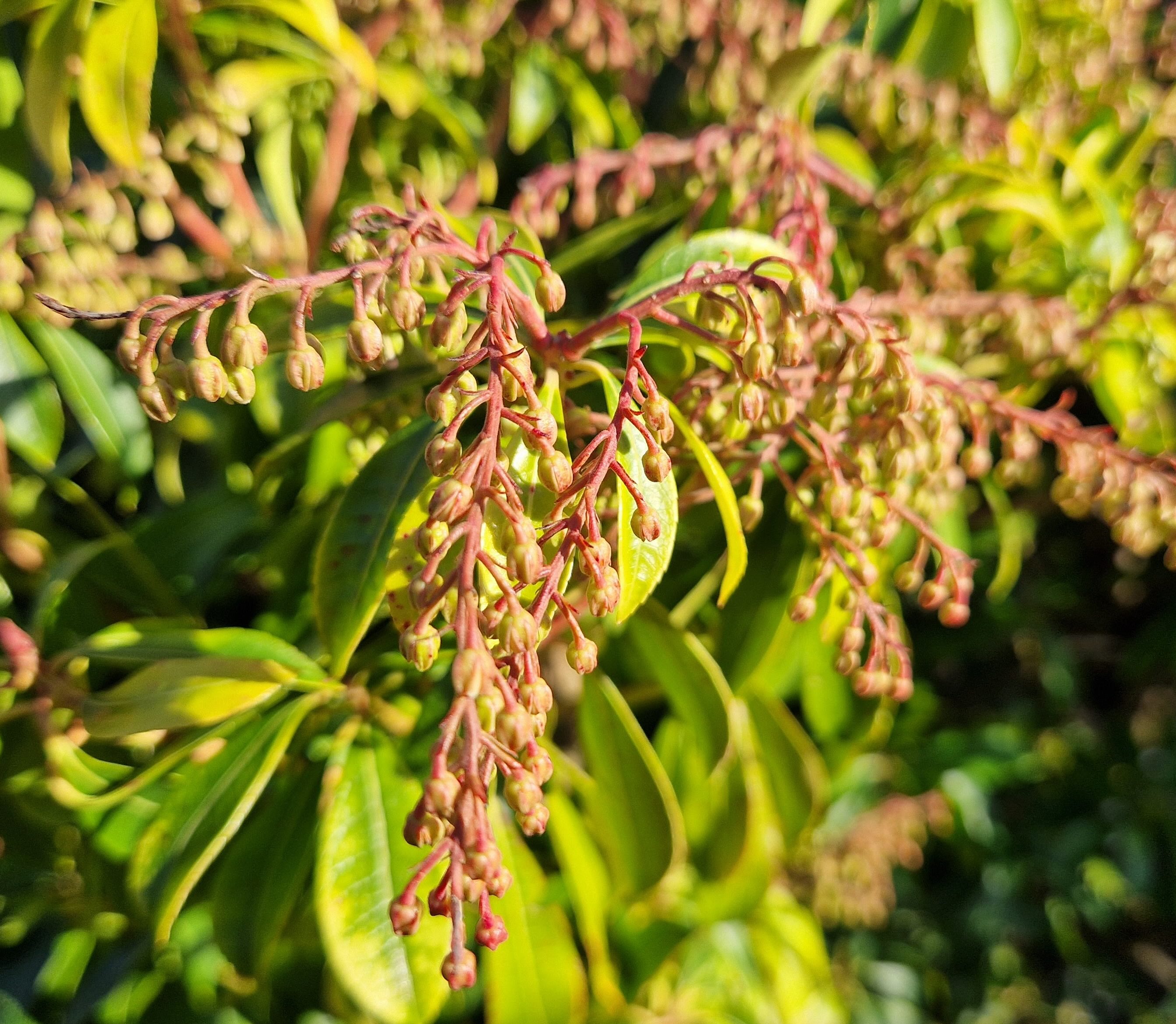 In the old established border, pieris is flowering hard. The sunlight make details of the tiny flowers much easier to pick out.