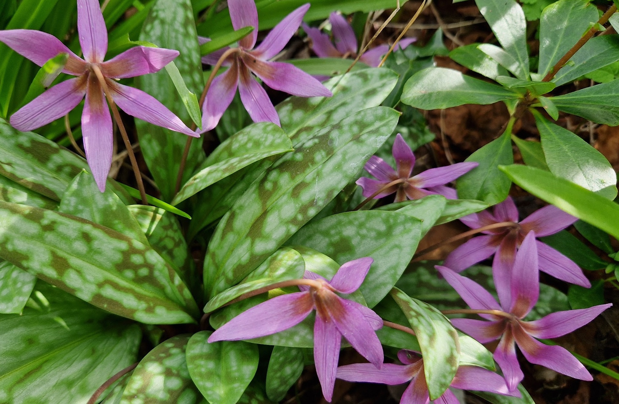 Splashes of colour are hard to find, but snuggling amidst the shady woodland growth, I found a wonderful little erythronium. So delicate and beautiful.
