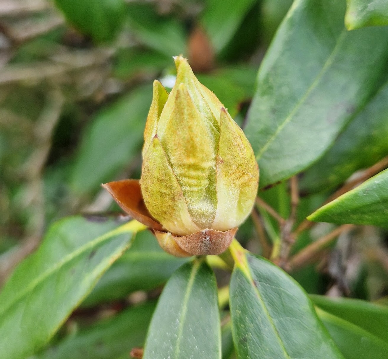 Rhododendron look like they will do well this year. This single example show so much promise, and has its own wonderful furry texture, yet sharp and pointy shape.