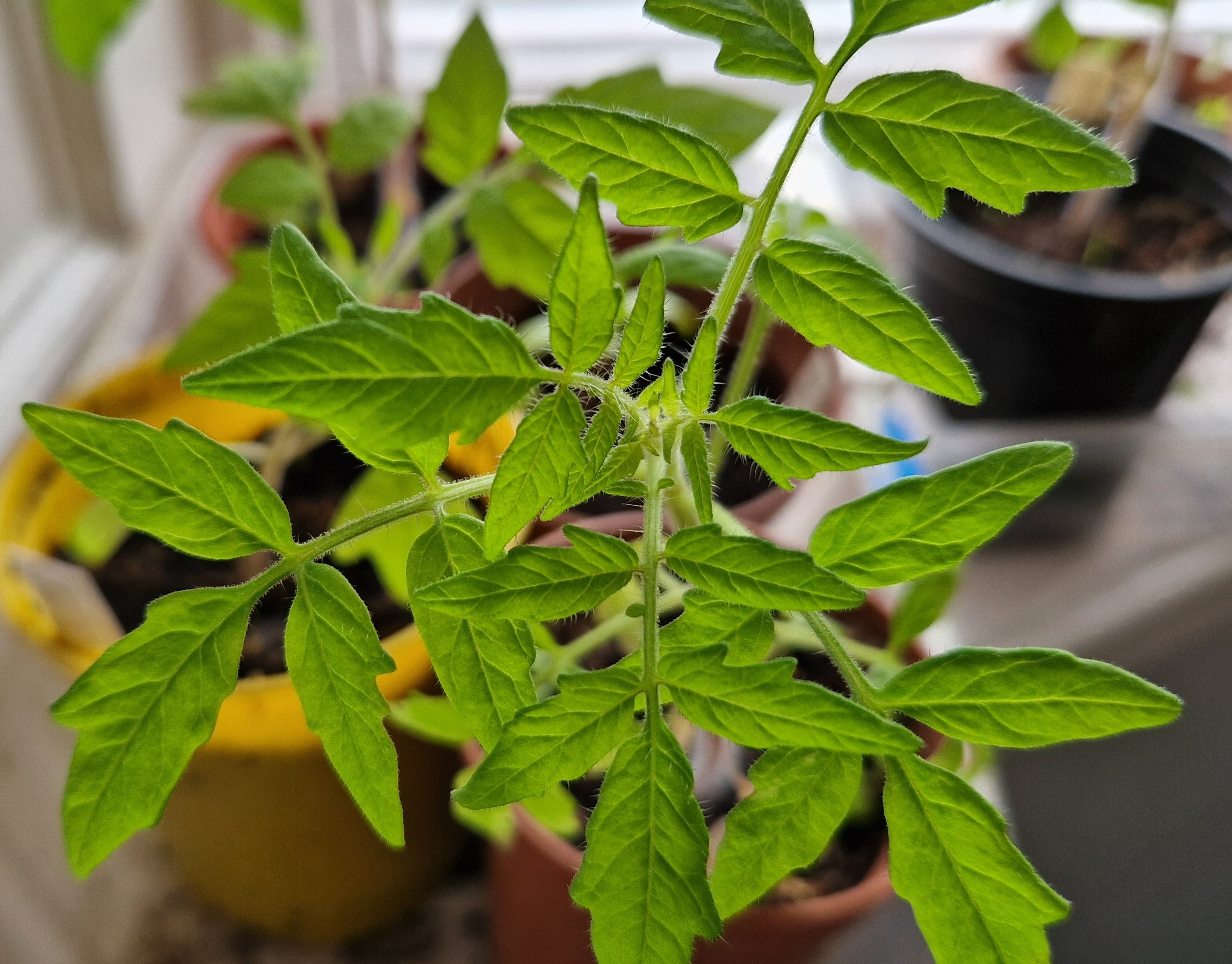 I was very please I brought tomatoes back into the house last week. We have had a couple of firsts. I’ve been moving them out for a warm greenhouse treat on sunny days (at least those days when I’m in from work early enough to get them tucked back into the house). Tomatoes are doing well. Here’s one, still enjoying an indoor windowsill.