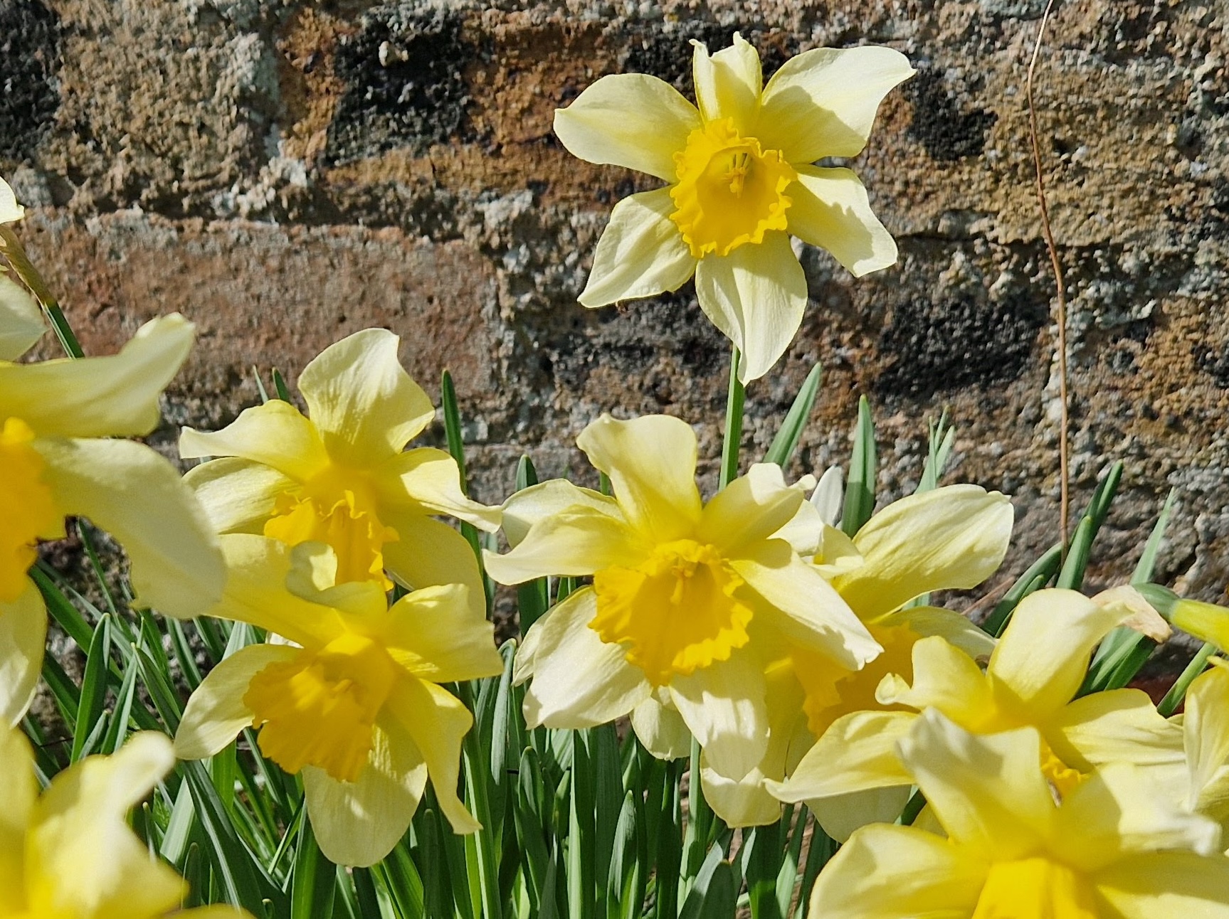Despite the wind and rain, daffodils of various varieties are bobbing along in the sunshine, and giving me plenty of pickings for vases in the house.